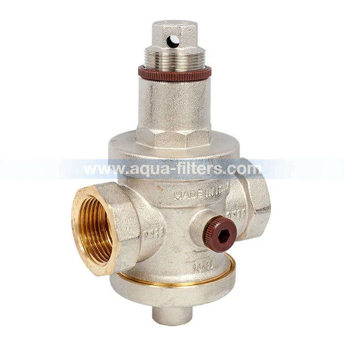 Регулатор на налягане с присъединителен размер 1“. Предназначен е за намаляване и стабилизация на налягането на водата, ако то е по-високо от нормалното. Фабричната настройка на налягането след регулатора е 3 bar и тя може да бъде променяна в диапазона от 1 до 6 bar.