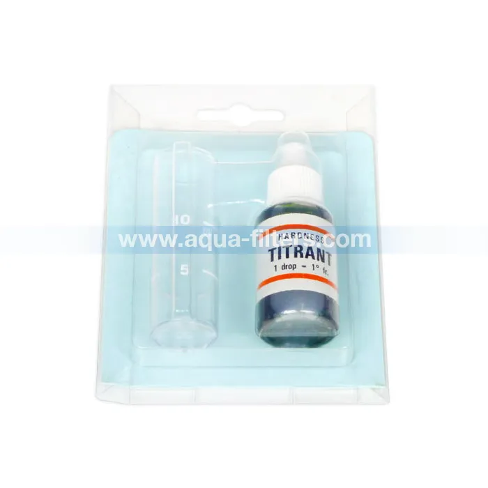 Количеството разтвор в шишенцето Titrant е около 400 капки. Тоест при твърдост на водата 20 °F ще можете на направите около 20 теста. Аналогично, ако твърдостта е 10 °F ще можете да направите 40 теста на водата.