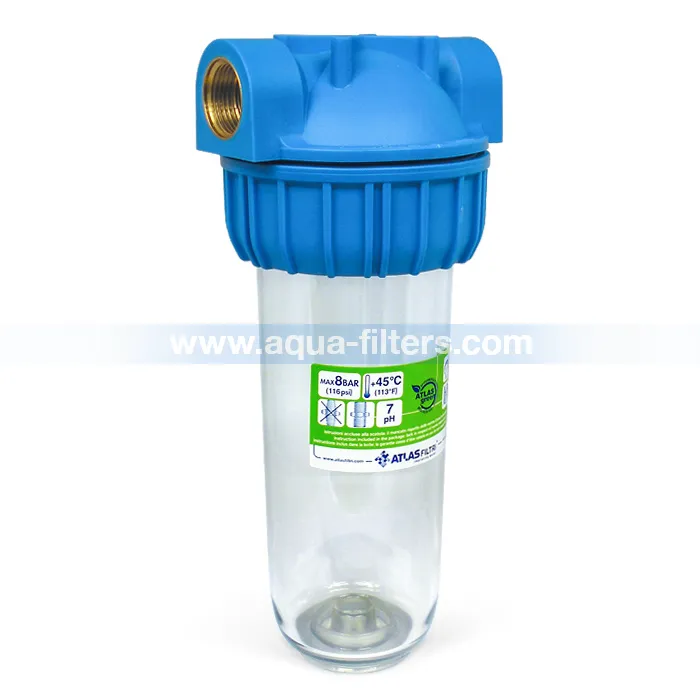 Корпус за филтър с присъединителен размер 3/4". Съвместим е с филтърни патрони с размер 10". В главата на корпуса има клапан за обезвъздушаване. Корпусите са за битово или индустриално приложение. В домакинството най-често се монтират директно след водомера или преди уред, изискващ филтриране на водата.