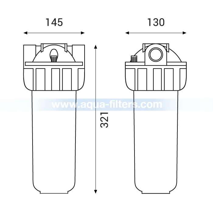 Корпус за филтър с присъединителен размер 1". Съвместим е с филтърни патрони с размер 9"3/4 и 10". В главата на корпуса има клапан за обезвъздушаване. За производството на корпуса са използвани екологично чисти материали, които покриват всякакви стандарти за качество.