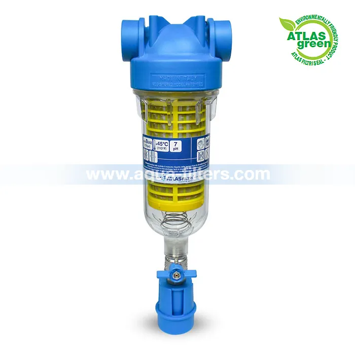 Самопочистващ филтър за вода с неръждаем филтърен елемент и присъединяване 3/4“ или 1“. Премахва от водата механични примеси – песъчинки, ръжда, утайки и т.н. В домакинството се използва за филтриране на водата за цялата къща като се монтира непосредствено след водомера. Това, което отличава този филтър е високия дебит на филтрация – до 6000 литра/час. Филтърът спокойно може да пречиства водата в голяма къща с две или три домакинства.
