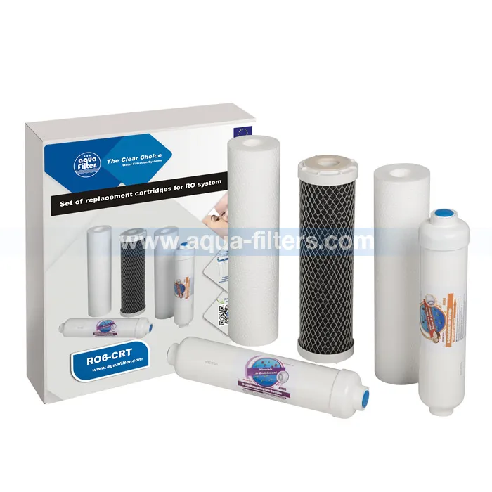 Пълен комплект от филтри за шестстепенна система с обратна осмоза. Съдържа трите 10" филтъра от комплект FP3-CRT (FCPS5, FCPS20, FCCBL) плюс линейните филтри AICRO и AIMRO.
