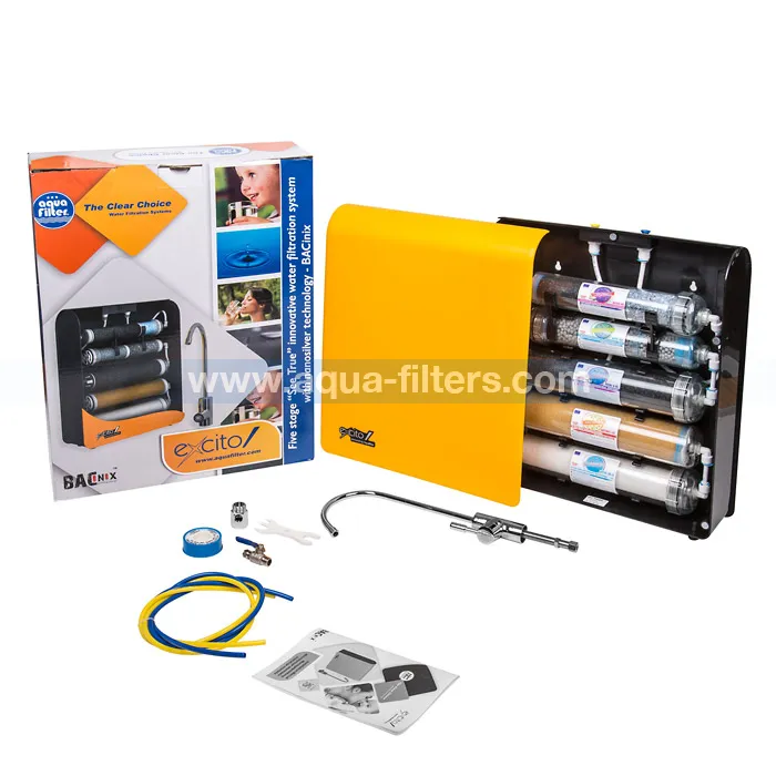 Системата е поместена в красива и компактна кутия. Благодарение на малките ú размери лесно можете да я монтирате под всяка мивка. Свързването към водопровода е много лесно, като всички необходими неща са включени в комплекта.