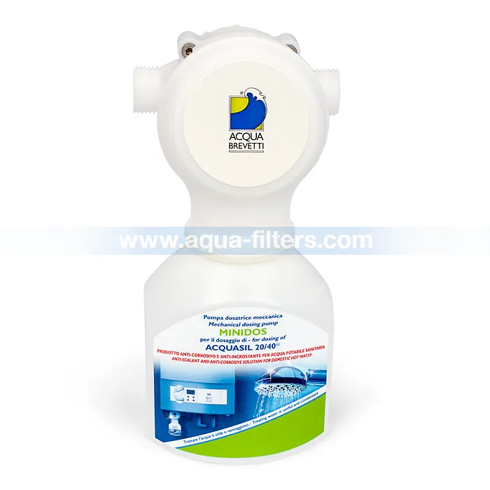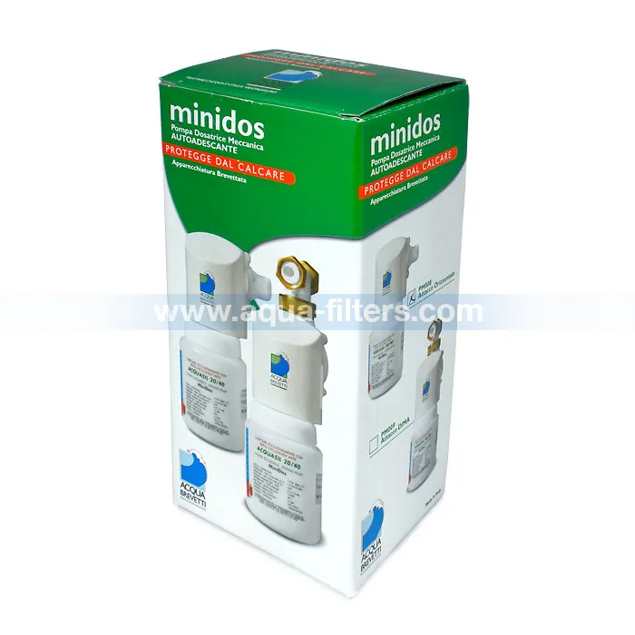 Системата Minidos е най-добрият начин да предпазите уредите си от отлагане на варовик. Тя представлява дозираща помпа, която впръсква във водата полифосфатна течност AcquaSIL 20/40. Полифосфатите, дори и в много ниска концентрация спират образуването на котлен камък и корозията.