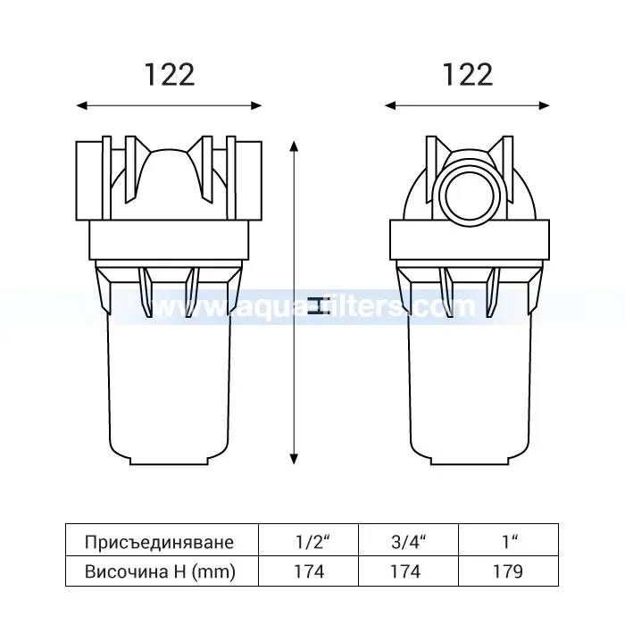 Забележка: филтърен патрон и ключ не са включени в комплекта. Корпусът е съвместим с филтърни патрони с размер 5".