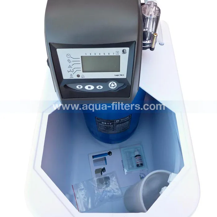 Компактен омекотител за вода с препоръчителен дебит 800 литра/час и 10 литра йонообменна смола. При него резервоарът за йонобменна смола е поместен в резервоара за солен разтвор.