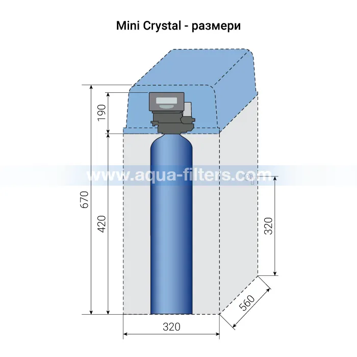 Единствено при омекотяването на вода с йонообменнa смолa ефектът е 100% гарантиран. Така е защото омекотителя отнема от водата минералите, причиняващи твърдостта и варовика. Без преобразуване, без добавяне на химикали във водата. При това работата на омекотителя за вода Mini Crystal е напълно автоматизирана. Вграденият контролер автоматично определя момента на регенерация в зависимост от входящата твърдост на водата и количеството вода, което системата е омекотила.