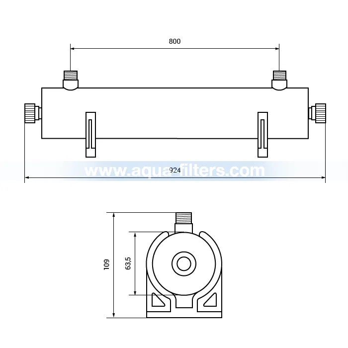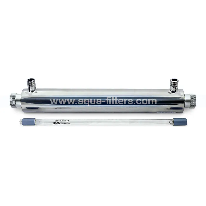 UV лампа за микробиологично пречистване на вода с дебит до 2720 литра/час. Корпусът е изработен от полирана неръждаема стомана, а присъединителният размер е 3/4”. За битови или промишлени цели. UV стерилизаторът е с дебит, достатъчен за качествена дезинфекция на водата в къща с едно или две домакинства.