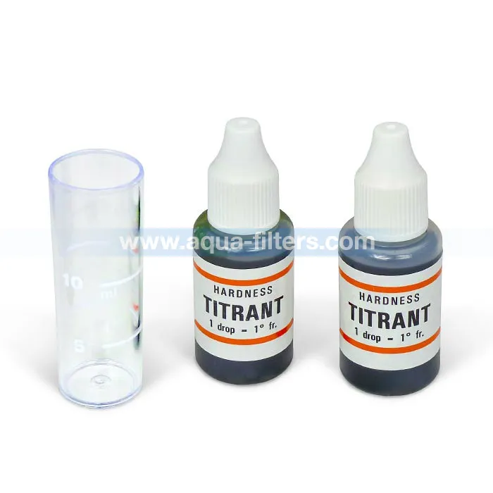 Комплект за измерване общата твърдост на водата. Комплектът включва: два броя шише Titrant, мензура, инструкция за употреба на български език. Отчита твърдостта във френски градуси (ºF).